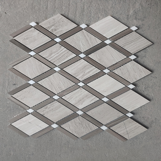 Combining unique wood grain textures with a diamond shape, this marble mosaic tile offers both a natural texture and a modern design sense. The realistic wood grain brings a forest-like atmosphere indoors, while the diamond arrangement adds a fashionable element. It is suitable for creating natural and minimalist-style home spaces, such as study or leisure area walls. The sturdy material is fire-resistant and moisture-proof, with superior performance, providing both beauty and practicality for your home.